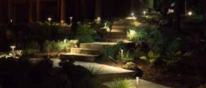 LED Landscape Lighting takes the best of what your landscape has by highlighting your home's architectural features as well as the planting and hardscape features. Now you can give your home that curb appeal even at night with great efficiency. LED lighting uses only a tenth of the electricity of conventional 120-volt systems.